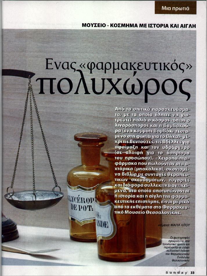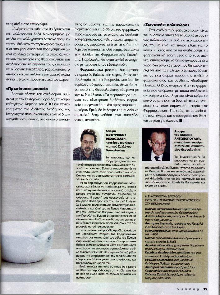 | | Όλα τα μέλη της Συντονιστικής Επιτροπής συμφώνησαν για την αναγκαιότητα της ίδρυσης του Φαρμακευτικού Μουσείου και